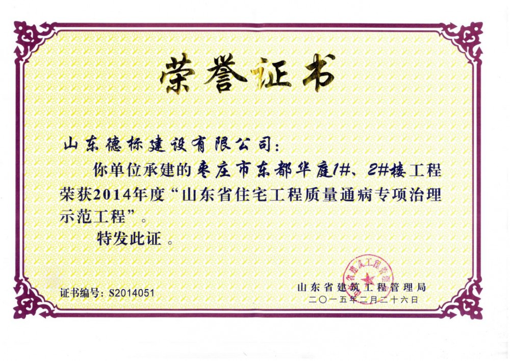 2014年度山東省質(zhì)量通病專項(xiàng)治理示范工程-東都華庭1#···