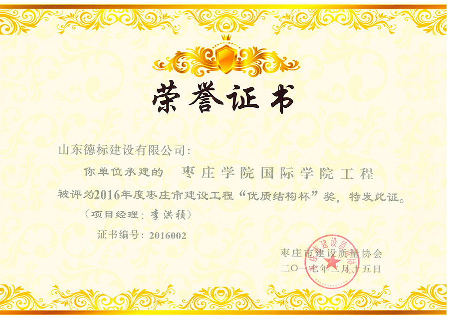 2016年市優(yōu)質(zhì)結(jié)構(gòu)-棗莊學(xué)院國際學(xué)院