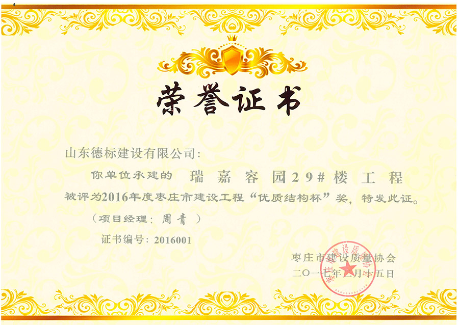 2017年度棗莊市建設(shè)工程優(yōu)質(zhì)結(jié)構(gòu)杯-仁建大廈