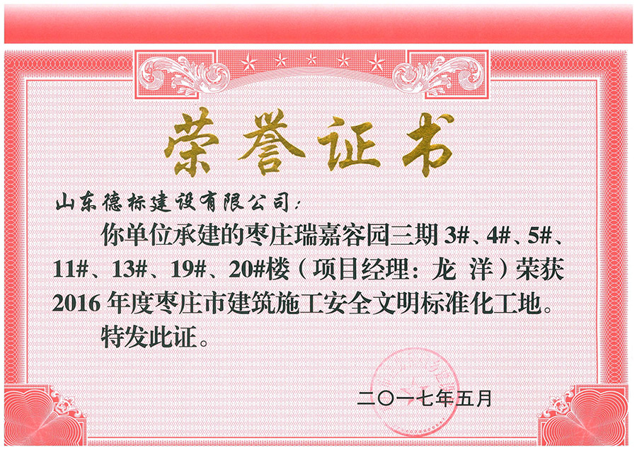 2016年度棗莊市建筑業(yè)先進(jìn)企業(yè)