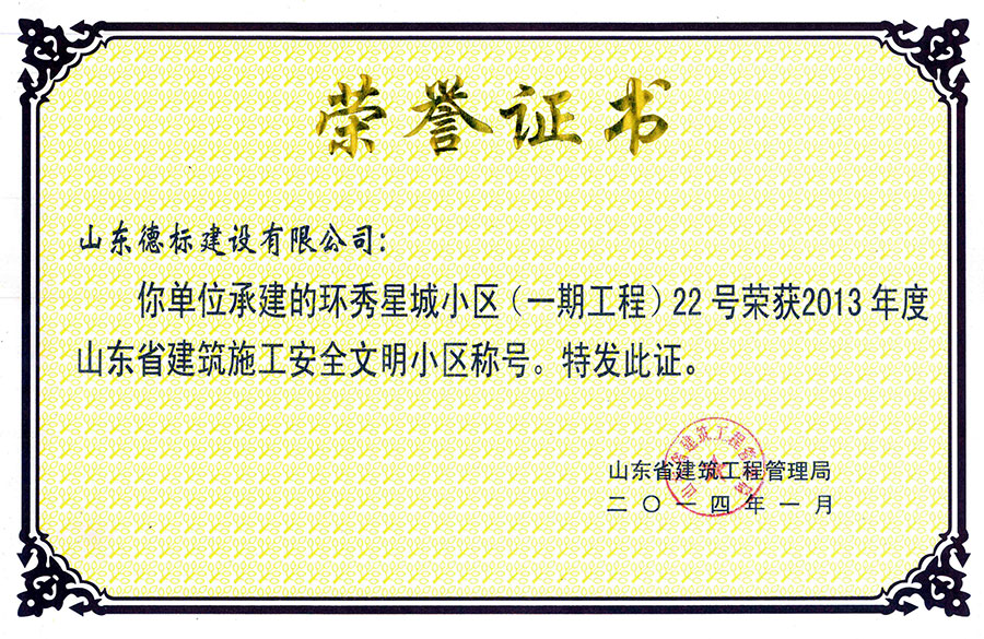 2013年度環(huán)秀星城10#樓安全文明小區(qū)