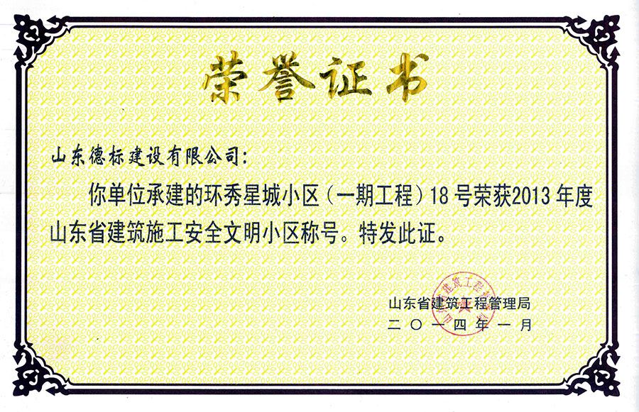 2013年度環(huán)秀星城18#樓安全文明小區(qū)