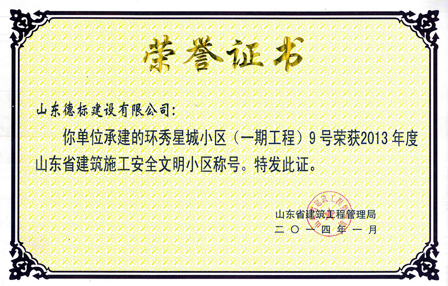 2013年度環(huán)秀星城9#樓安全文明小區(qū)